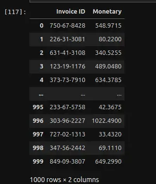 monetary_data['Invoice ID'] = dataset['Invoice ID']