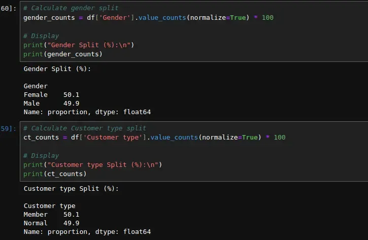 # Calculate gender split