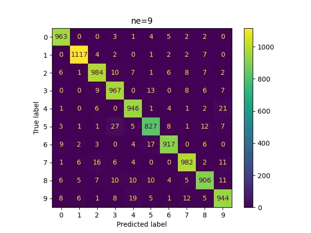 So it looks like 4 is being misclassified as 9, 6 is being misclassified as a lot of other numbers and 9 is being misclassified as 4 and 7.
